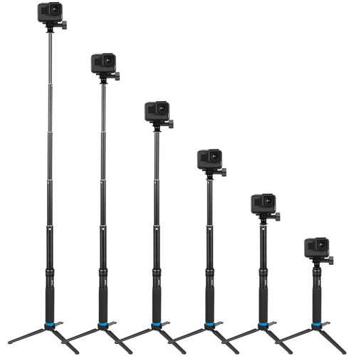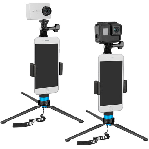 The TELESIN Extendable Aluminum Selfie Stick with Tripod and Phone Clip has everything you need to record travel content on your smartphone or action camera. The five-section selfie stick and tripod can stabilize your recording device in handheld or standing configurations. It extends up to 35.4" and features a multi-angle 180° rotation to achieve the best angle.