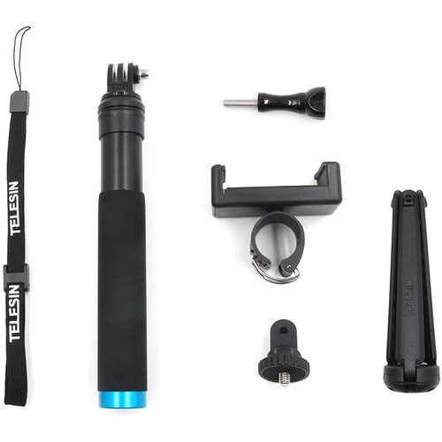 The TELESIN Extendable Aluminum Selfie Stick with Tripod and Phone Clip has everything you need to record travel content on your smartphone or action camera. The five-section selfie stick and tripod can stabilize your recording device in handheld or standing configurations. It extends up to 35.4" and features a multi-angle 180° rotation to achieve the best angle.
